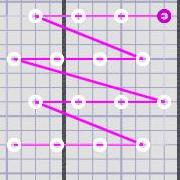 · Ordering: The dots have an order to them so that when you drop a group of performers in the form you will know the way that they will fold into the form. The order is shown by purple lines attaching all the dots. The first dot is also colored purple.